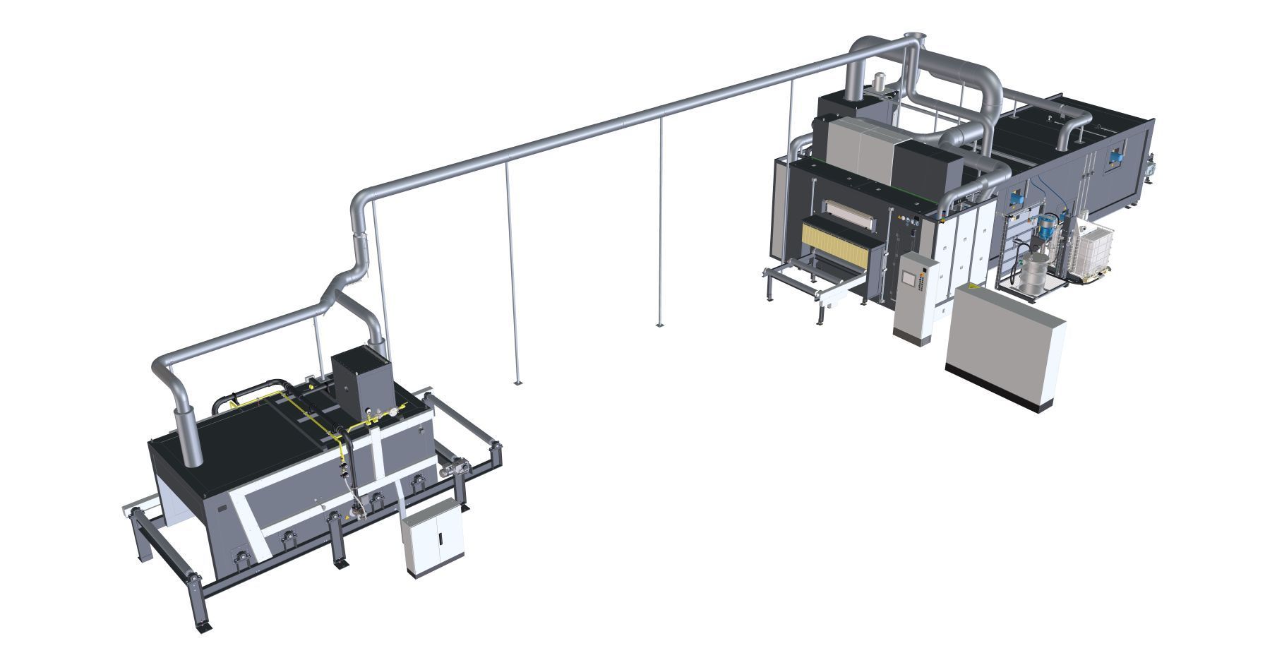 Lackieranlagen zum Lackieren von Steinwollplatten oder Steinwolllamellen werden in den bestehenden Transportweg bzw. in die Fertigungsstraße integriert oder als Einzellinie aufgestellt.